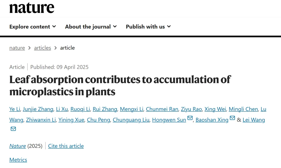 该研究首次明确提出叶片吸收大气微塑料是微塑料进入食物链和人体的重要途径,推动了微塑料污染研究领域的认知进步,是我国在新污染物研究领域取得的又一引领性成果,可为污染物的管理政策制定提供科学依据。