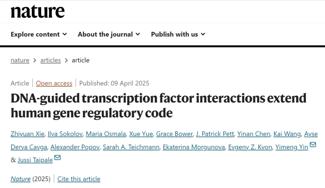 北京时间4月9日23时,同济大学医学院、同济大学附属东方医院心脏病全国重点实验室尹贻蒙研究团队与剑桥大学研究团队合作研究成果在线发表于《自然》(nature)杂志,论文题为“dna-guided transcription factor interactions extend human gene regulatory code“(dna介导的转录因子间协同作用延展了人类基因调控密码)。