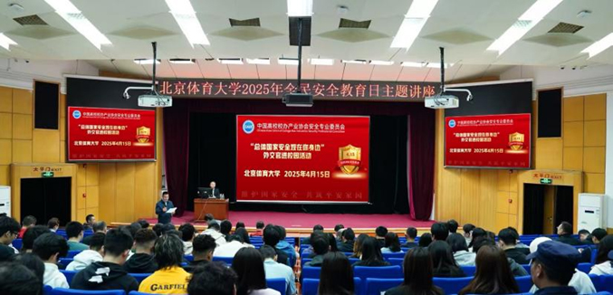 4月15日,全民国家安全教育日十周年之际,中国高校校办产业协会安全专业委员会与人民日报《平安校园》杂志开启战略合作,汇聚国安、公安、保密、网信、新闻、科研、应急管理等领域具有丰富实战经验的领导干部和专家学者,组成高端智库,深入践行总体国家安全观,发起“总体安全观就在你身边”系列活动,有特种兵进校园、外交官进校园、网络安全进校园、红色基因进校园等多个主题。在“外交官进校园”主题活动中,邀请了中国华人民共和国驻里约热内卢总领事、外交部新闻司原一级巡视员李杨来到北京体育大学,北京体育大学党委精心组织了280多位师生共聚一堂,举办了一场以“筑牢国家安全防线的深度思考”为主题的具有哲思与情怀的别开生面的讲座。