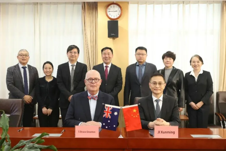 4月14日下午,首都医科大学举行与澳大利亚麦考瑞大学博士生联合培养框架协议签约仪式。首都医科大学党委副书记、校长吉训明院士与麦考瑞大学校长s bruce dowton代表两校签署协议。