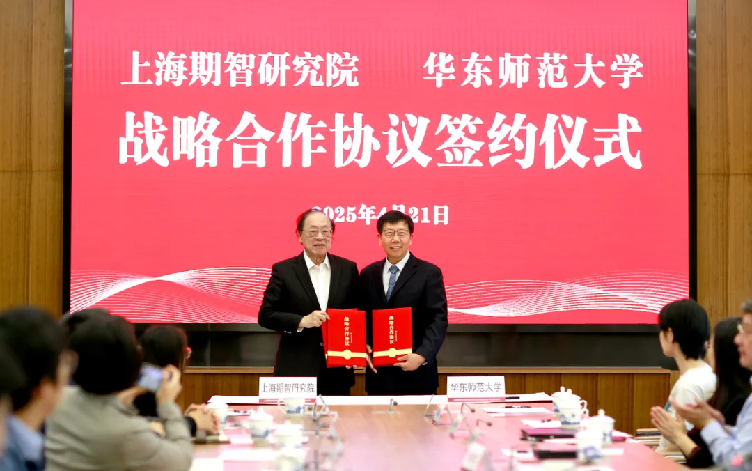 4月21日,上海期智研究院与华东师范大学战略合作协议签约仪式在华东师范大学普陀校区举行。上海期智研究院院长姚期智院士、华东师范大学校长钱旭红院士代表双方签约。