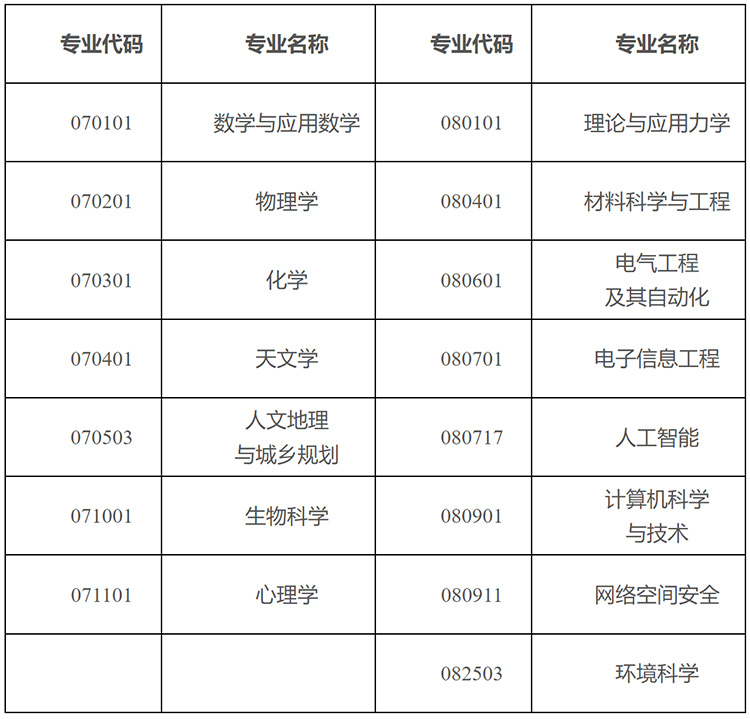 2025年国科大共15个专业招收本科生,具体专业如下: