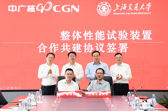 5月13日,中广核研究院有限公司(以下简称“研究院”)与上海交通大学签署了整体性能实验装置共建协议。中国广核集团有限公司(以下简称“中广核”)党委委员、核电股份公司副总裁周建平,研究院党委书记、董事长舒睿,上海交大党委常委、常务副校长奚立峰,机械与动力工程学院副院长邱殿凯,项目负责人顾汉洋教授等参加了活动。