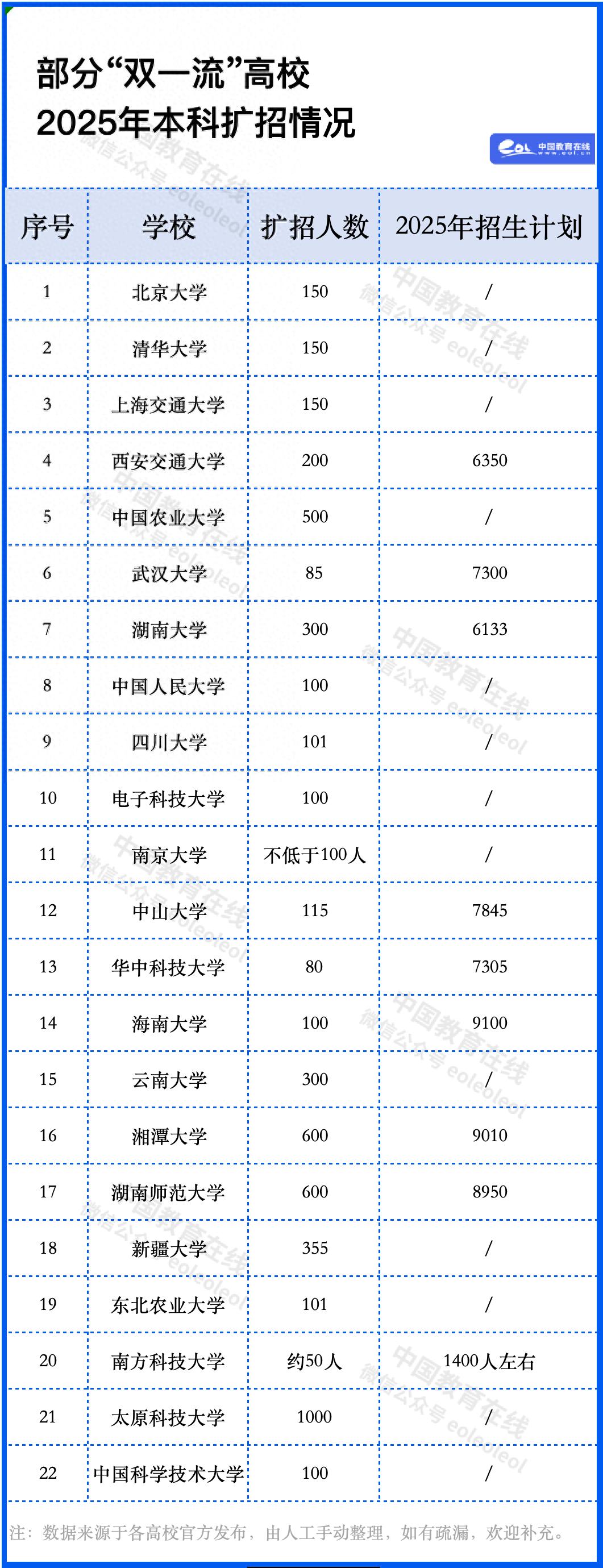 2025年,太原理工大学继续扩大招生规模,较去年预计增加1000人。3月10日,湖南师范大学表示今年拟新增600个招生名额,招生总规模将达到8950人。此外,中国农业大学今年将扩招本科生500人。新疆大学、云南大学、湖南大学扩招名额均在300人及以上。