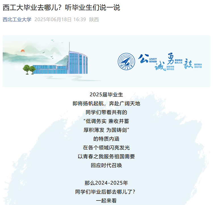 近日,西北工业大学大学官微公布2025届毕业生就业数据。