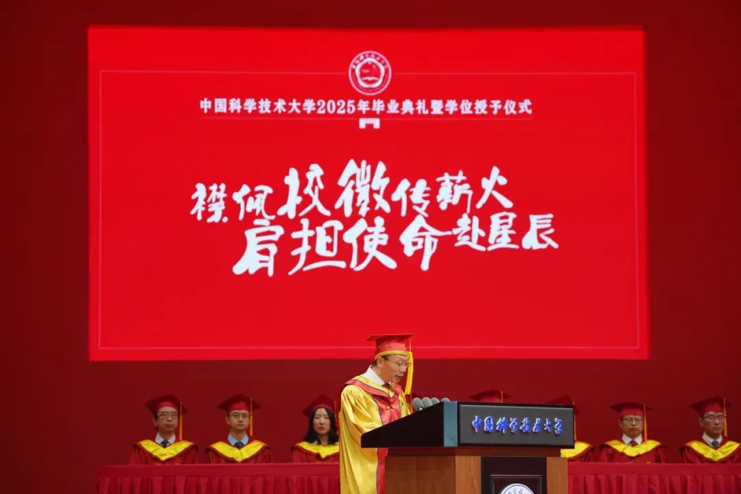 今天,我们隆重举行中国科学技术大学2025年毕业典礼暨学位授予仪式。在此,我谨代表学校全体教职员工,向刻苦学习、潜心科研,圆满完成学业、顺利获得学位的6700余名同学致以最热烈的祝贺和最诚挚的祝福!同时,向辛勤养育你们的父母、悉心指导你们的老师、默默支持你们的亲朋好友表示衷心的感谢!