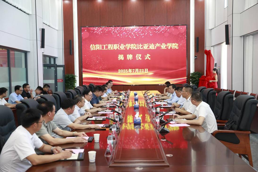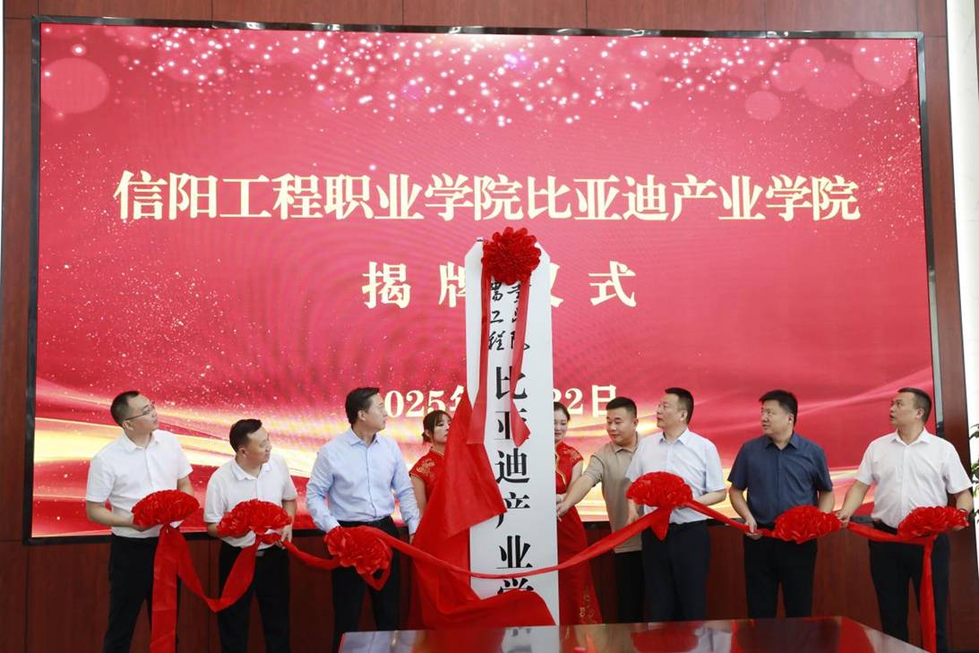 信阳工程职业学院校长黄功学表示,产业学院的建设离不开各级政府的扶持、教育厅的指导及比亚迪的资源支持,政校企三方聚力是学院健康发展的基石。学校将重点推进三方面工作:一是精准匹配产业需求,围绕新能源汽车、高端装备制造等产业链,建设新能源汽车技术、智能机电技术等特色专业群,与比亚迪共建“需求分析—标准制定—课程开发—动态更新”闭环机制,确保人才培养与产业技术迭代同步;二是共建高水平“双师”团队,选派骨干教师赴比亚迪一线实践,设立“比亚迪工程师工作站”,邀请企业专家参与课程设计与教学指导,实现师资能力与企业技术前沿无缝对接;三是构筑共享型实训生态,依托比亚迪技术共建校内实训基地,引入真实生产项目与工艺标准,强化学生实战能力。