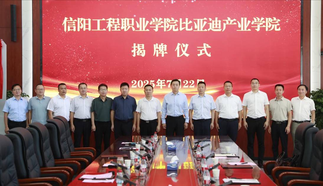 7月22日上午,信阳工程职业学院与比亚迪股份有限公司共建的“比亚迪产业学院”揭牌仪式隆重举行。河南省教育厅党组成员、副厅长张国强,省教育厅职成处处长张家成,全国新能源智能制造汽车行业产教融合共同体理事长单位、河南工业和信息化职业学院校长史先进,比亚迪股份有限公司人力资源处校企合作总监杨双喜,信阳市教体局局长林长,固始县委常委、常务副县长王廷辉,固始县政协副主席、信阳工程职业学院党工委副书记李涛等省市县各级领导及企业代表出席仪式,仪式由李涛主持。