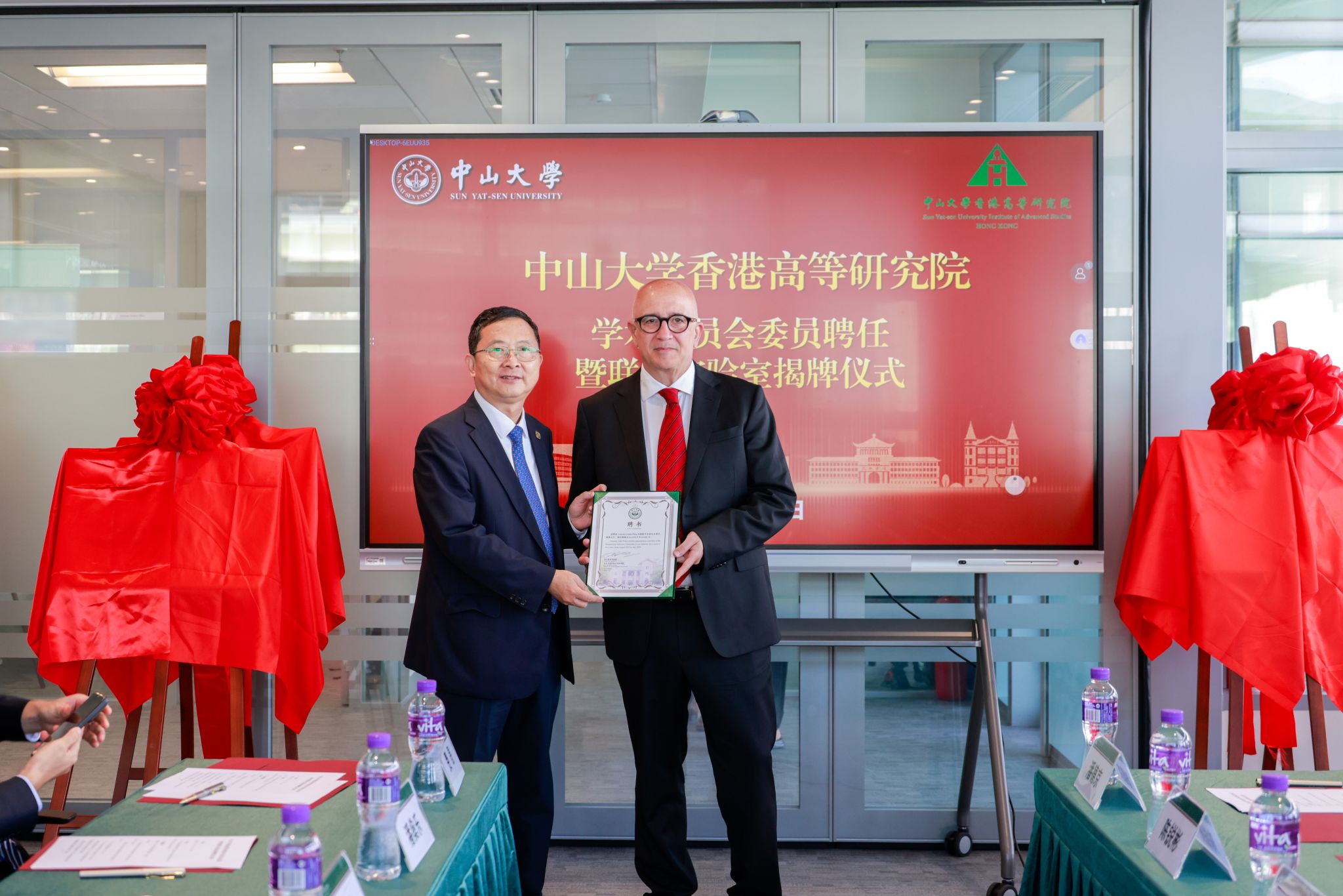 8月12日下午,中山大学香港高等研究院(以下简称“高研院”)在香港科学园举行学术委员会委员聘任仪式暨联合实验室揭牌仪式。