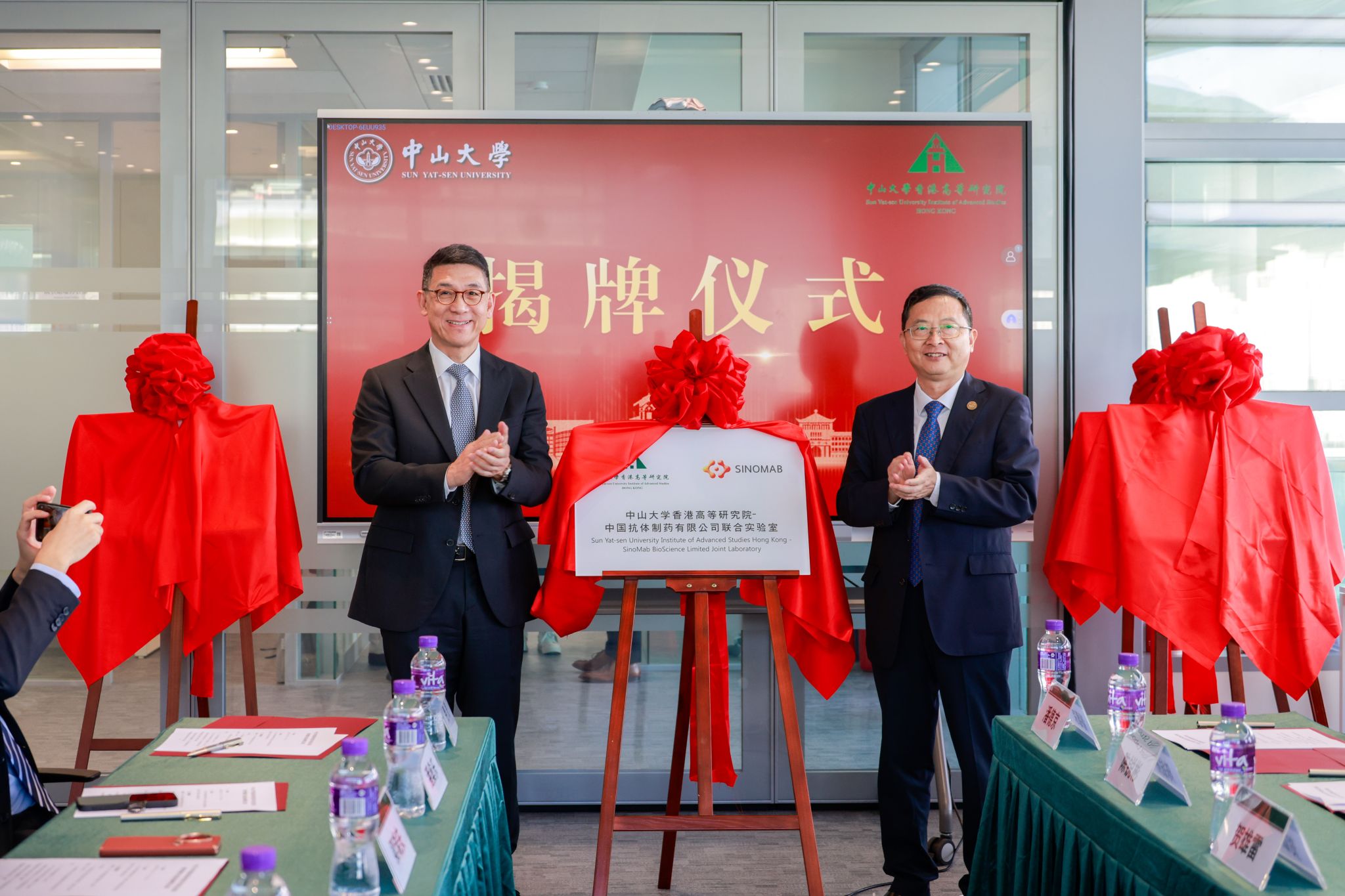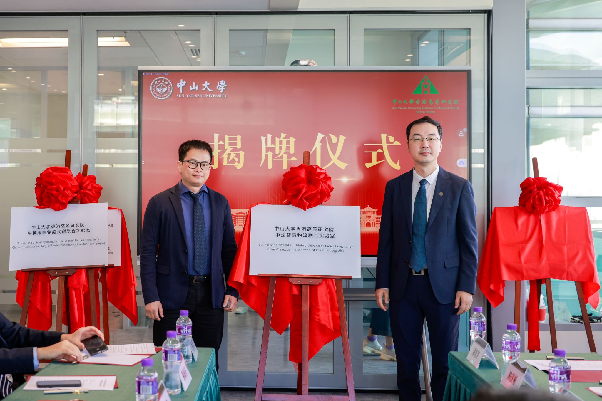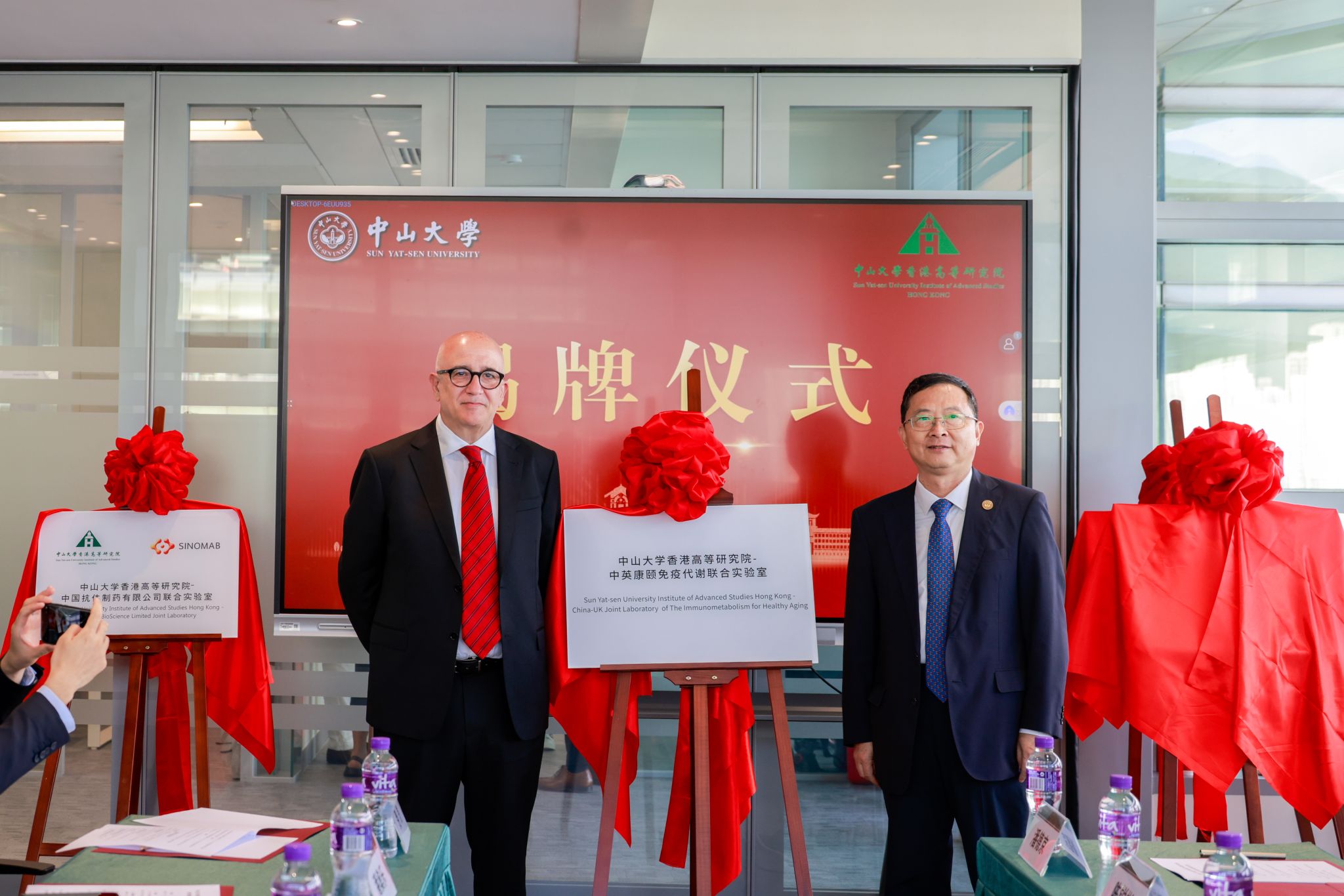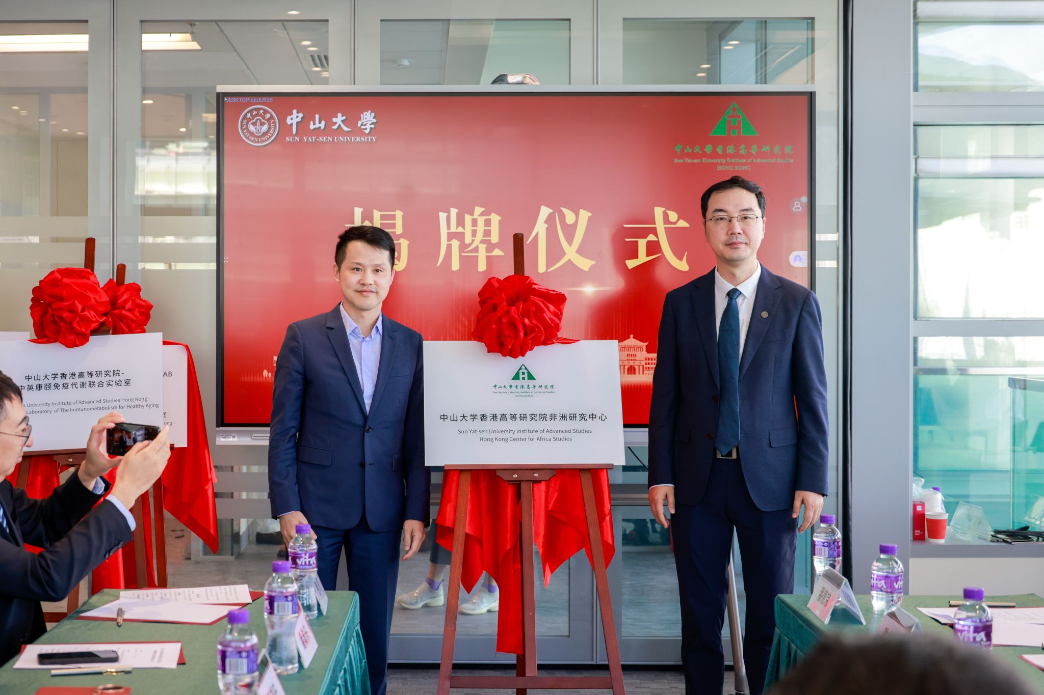 高研院还分别和英国剑桥大学心血管代谢中心安东尼奥教授团队建立中英康颐免疫代谢联合实验室,和法国巴黎高等矿师学院管理研究中心潘燊乐教授团队建立中法智慧物流联合实验室,和香港上市公司中国抗体制药有限公司梁瑞安博士团队建立创新药物研发联合实验室,和广州谢诺投资集团建立非洲研究中心。会上,中山大学校长高松、副校长郑跃为四家联合实验室揭牌。此次联合实验室的落地,将在老龄健康、智慧物流、生物医药、非洲研究等领域产出原创成果,充分体现中山大学与世界知名大学及粤港澳大湾区各界的深度融合,不断发挥桥梁纽带作用,助力香港建设国际创科中心。