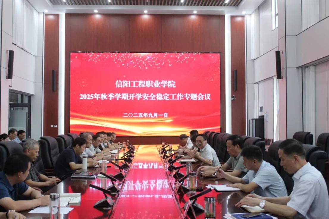 为贯彻省教育厅秋季开学安全稳定工作部署,精准把握开学前后校园安全形势,9月1日上午,信阳工程职业学院在炎培楼7楼中会议室召开2025年秋季学期开学安全稳定工作专题会议。党委副书记、校长黄功学主持会议并讲话,党委副书记许松,副校长杨金国、杨新学、徐俊杰和校长助理徐耀武出席,各二级学院、部门负责同志参加会议。