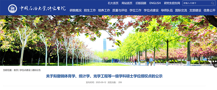 近日,中国石油大学(华东)研究生院网站发布拟撤销硕士学位授权点的公示。