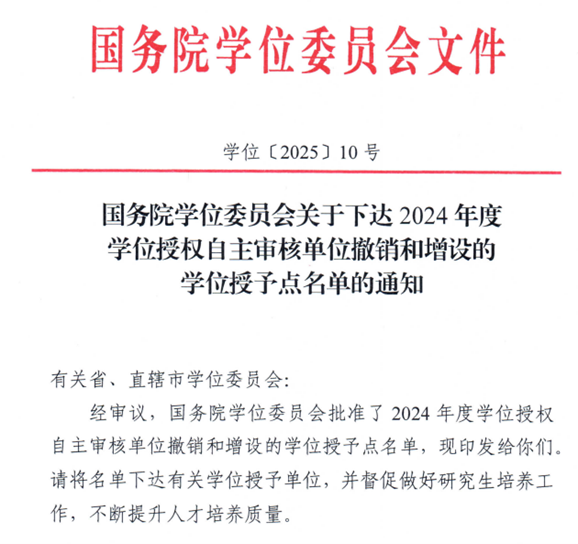 近日,国务院学位委员会发布《关于下达2024年度学位授权自主审核单位撤销和增设的学位授权点名单的通知》(学位[2025]10号),山东大学核科学与能源动力学院申报的“核科学与技术”一级学科博士学位授权点正式获批,将自2026年开始招生。