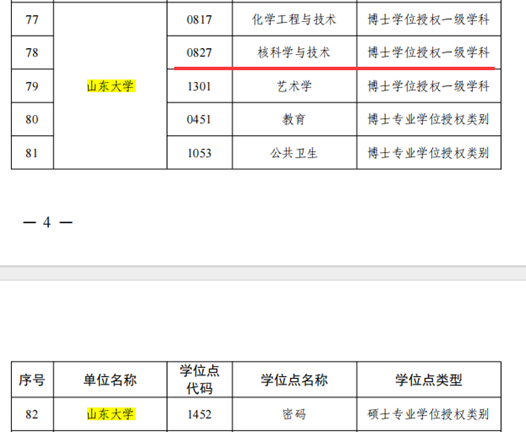 山东大学“核科学与技术”一级学科博士学位授权点获批