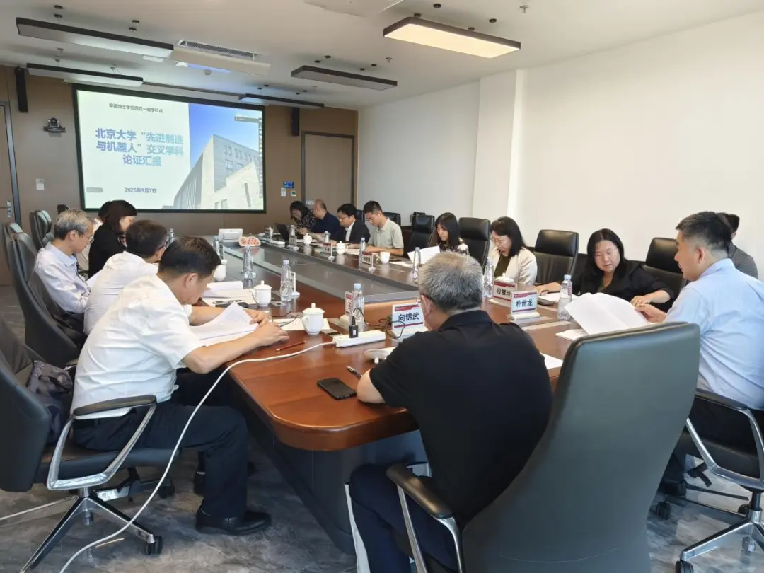 2025年9月7日,北京大学自主设置“先进制造与机器人”博士学位授权交叉学科学位点专家论证会在新奥工学大楼4047会议室召开。会议邀请了包括4位院士在内的9位相关领域专家担任论证会专家,他们是中国工程院院士、浙江大学工学部主任杨华勇教授,中国工程院院士、重庆大学校长王树新教授,中国工程院院士、北京航空航天大学学术委员会副主任向锦武教授,中国科学院院士、北京大学工学部主任段慧玲教授,中国机械科学研究总院集团有限公司党委书记、董事长王德成研究员,清华大学航天航空学院李俊峰教授,北京理工大学机械与车辆学院院长席军强教授,西安交通大学人工智能学院党委书记兰旭光教授,西安理工大学自动化与信息工程学院刘丁教授。论证会专家组组长由杨华勇担任。北京大学副校长、中国科学院院士朴世龙出席论证会并致辞。研究生院副院长徐明主持会议。