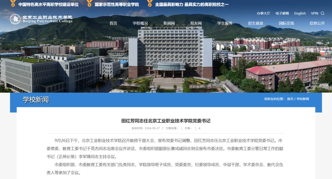 9月26日,北京电子科技职业学院与北京工业职业技术学院两所“双高”院校,宣布“换帅”调整。