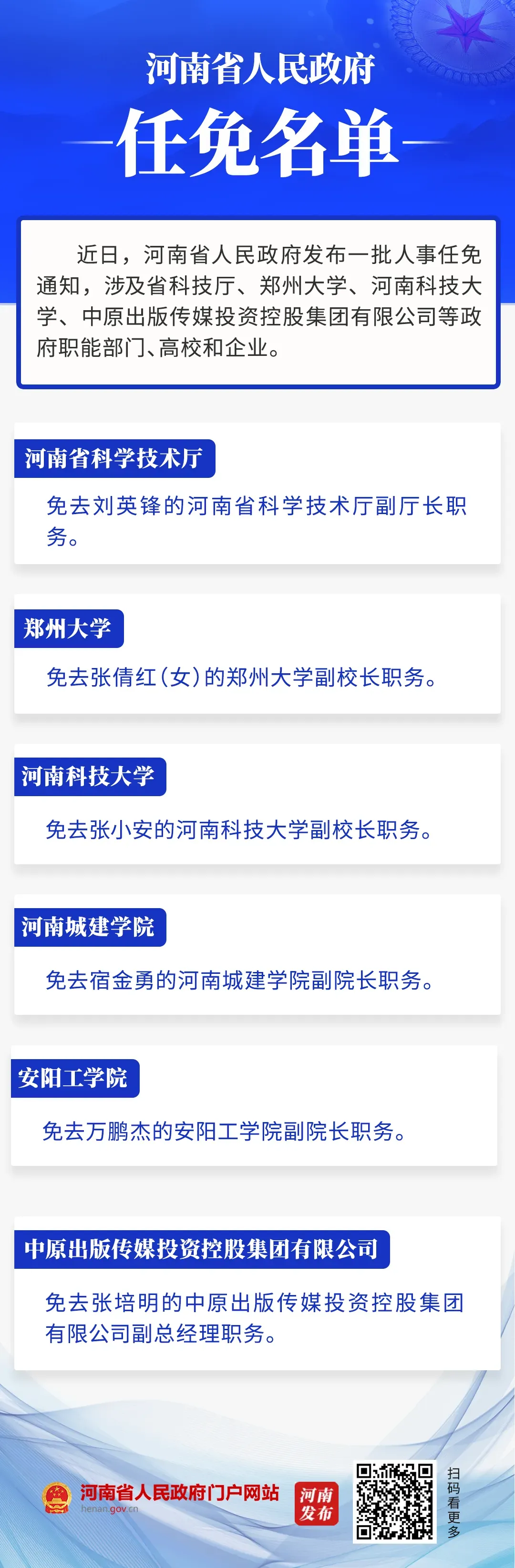 河南省政府新任免一批干部,涉及郑州大学等多所高校