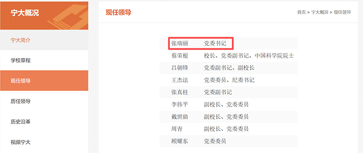 近日,宁波大学kok登录官网现任领导一栏更新显示,张瑞丽已任宁波大学党委书记。