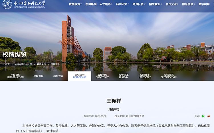日前,杭州电子科技大学kok登录官网“现任领导”一栏显示,王尧祥已任杭州电子科技大学党委书记。