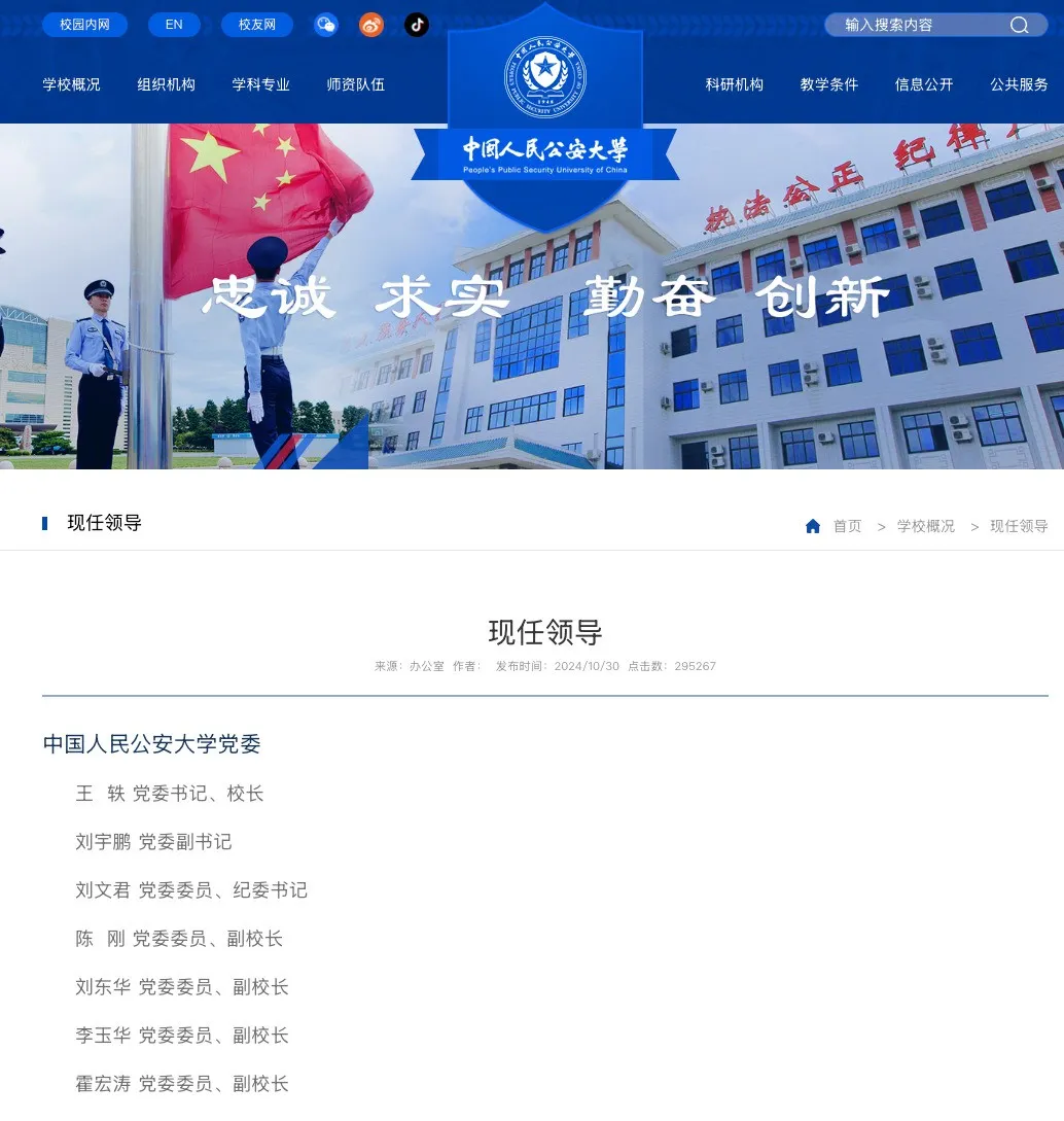 近日,中国人民公安大学kok登录官网“学校概况”栏目更新显示,中国人民公安大学校长王轶已于今年1月起担任该校党委书记。