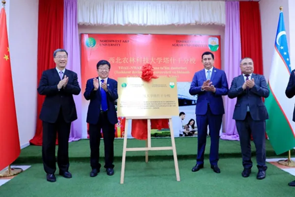 教育部部长怀进鹏、乌兹别克斯坦农业部部长阿卜杜拉赫莫诺夫、西北农林科技大学校长吴普特、塔什干国立农业大学执行校长伊斯拉莫夫共同为分校揭牌。乌兹别克斯坦高等教育与科学创新部副部长马赫卡莫夫、塔什干国立农业大学副校长阿卜杜阿齐兹、中国驻乌兹别克斯坦大使馆代表出席揭牌仪式。