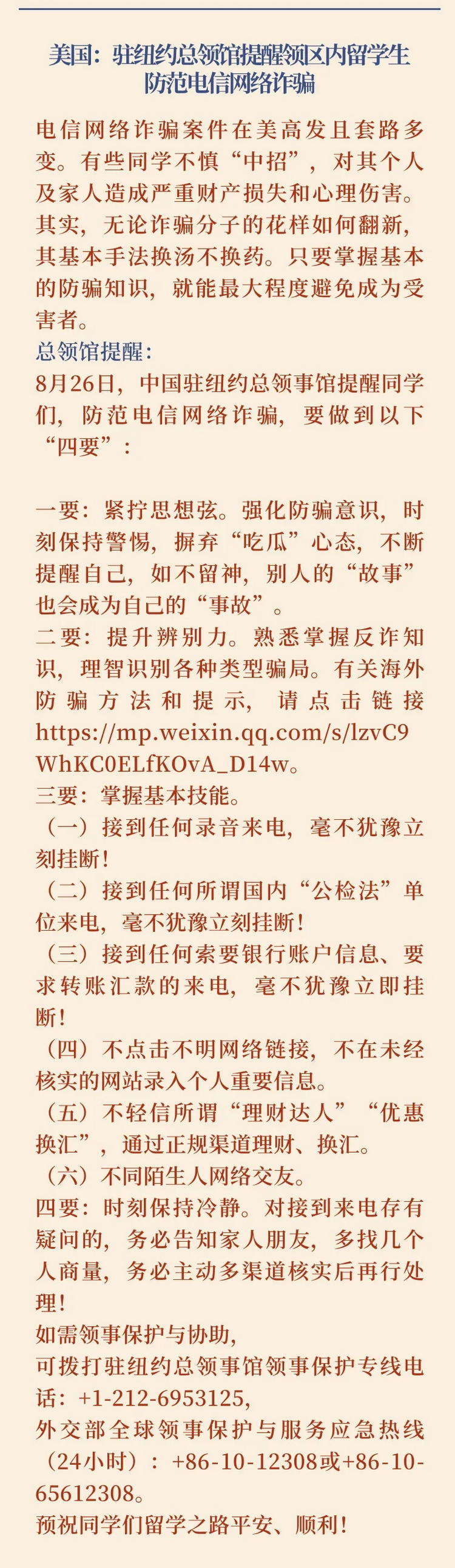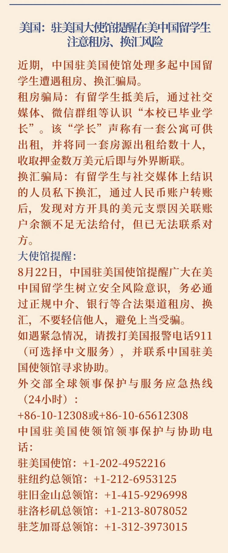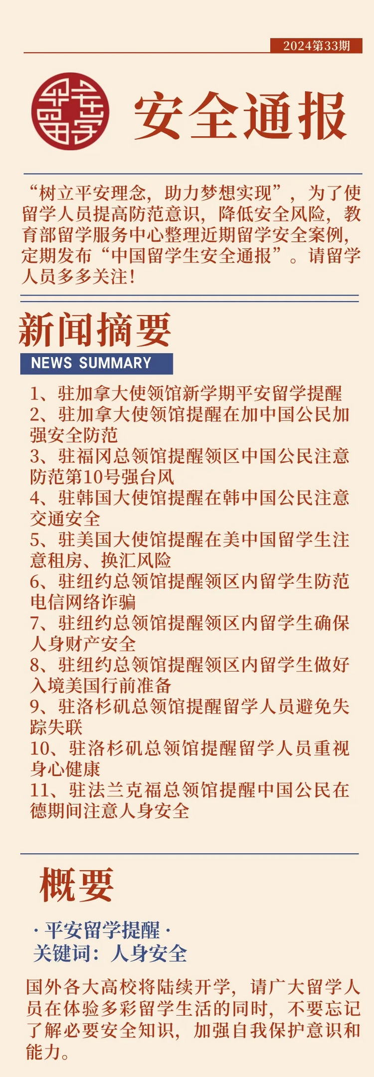 2024第33期中国留学生安全通报