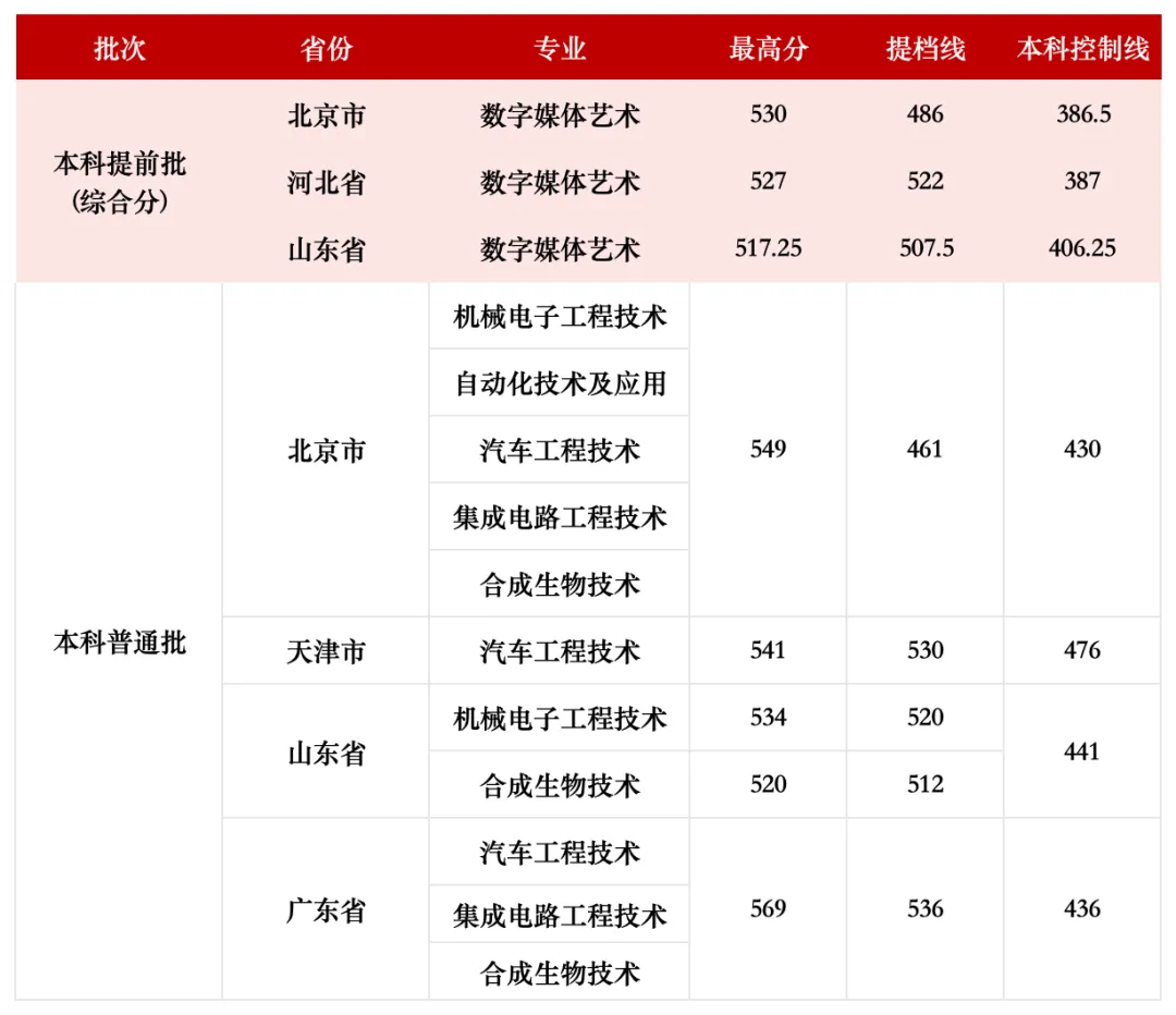 北京科技职业大学2025年首次招生录取迎来开门红!从本科普通批次看,在北京录取的专业组最高分达549分,超出本科控制线119分,超出特殊控制线 30分。