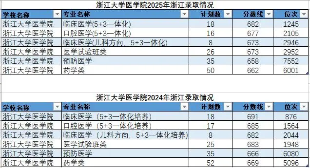 以浙江大学医学院在浙江的投档线为例,在招生计划基本保持稳定的情况下,所有专业分数线和位次号都有明显下滑。例如最为热门的临床医学(5 3一体化)专业,今年比去年降了9分、位次后移369位。降幅最明显的是预防医学专业,今年比去年降了8分、位次后移1472位。