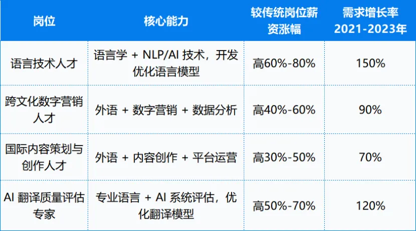 概括来看,以下四类代表性“外语 ”复合型人才需求上升,且短期内难以被完全替代: