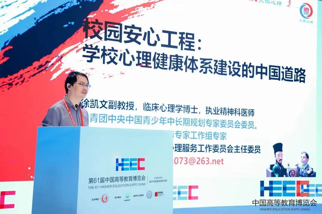 大儒心理创始人徐凯文博士作题为“校园安心工程:学校心理健康体系建设中的中国道路”的主题报告。他指出,心理疾病已成为本世纪最主要疾病之一,特别是在疫情后情况尤为突出,建构危机干预体系不仅要学习西方理论,更要走中国道路。面对心理测评不准确、心理干预不到位、家长焦虑不改善的三大难题,他提出了包括危机快筛与心理档案建立、心理工作者专业培训、危机预防与常态化管理在内的七项校园危机干预体系完善措施。