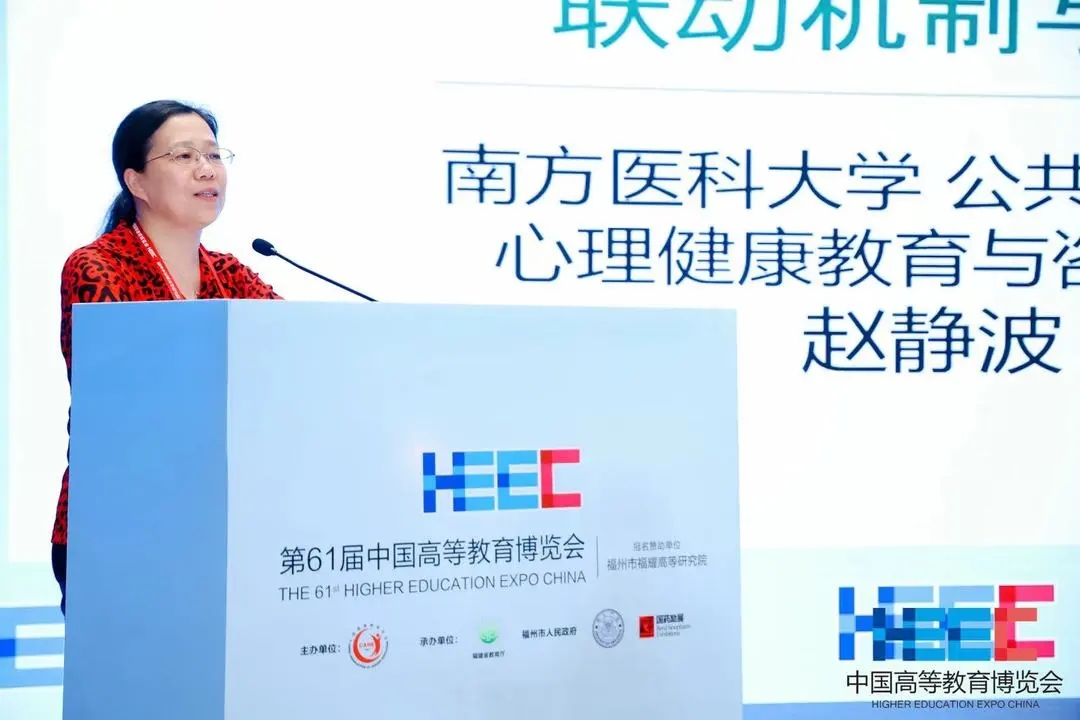 南方医科大学公共卫生学院心理健康教育与咨询中心主任赵静波作题为“校园心理危机干预的联动机制与作用”的主题报告,通过案例分析教学法,强调了校园心理危机干预联动机制的必要性。此外,她提出了学校各部门、学校与家长等多元协作的保障策略,以形成联动安全网,共同预防和处理心理危机事件,详细介绍了危机识别、预防和处理的系统性工程以及家校合作在其中的关键作用,为校园心理危机干预联动工作提供了更加系统实操的经验指导。
