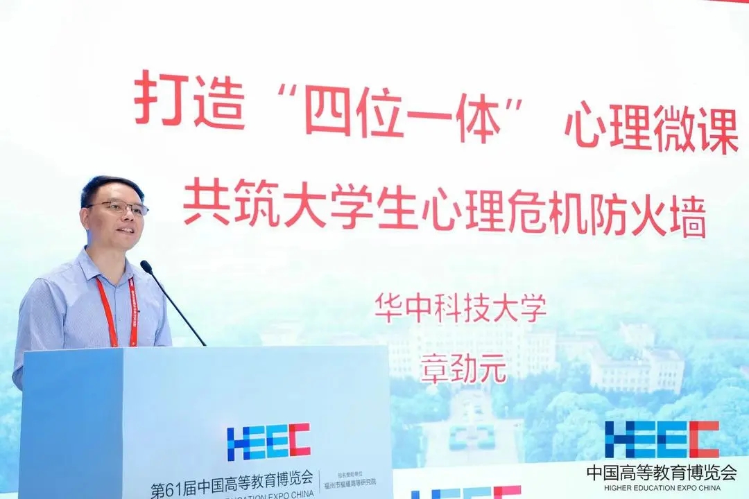华中科技大学心理健康教育中心主任章劲元作题为“打造四位一体心理微课,共筑大学生心理危机防火墙”的主题报告,介绍了华中科技大学在心理健康教育方面的创新实践——精心设计和推广280多个学生、辅导员、研究生导师、家长系列微课,共同促进学生的健康成长。他强调了提升心理健康教育的便利性、精准性和实效性的重要意义,提出强化问题导向,把准心理工作需求;对症应激主因,加强家校协同育人;适应学习特点,创新宣传教育形式;聚焦关键保证,提升心理育人能力等工作经验,为高校心理健康教育工作提供了新的思路。