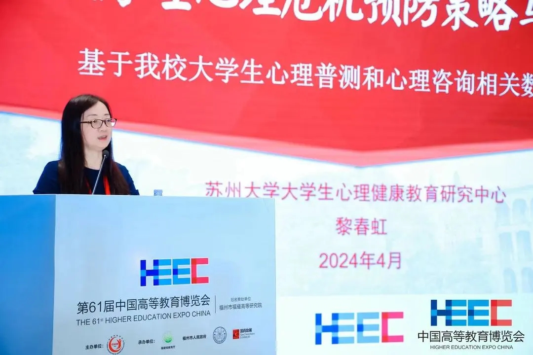 苏州大学学生工作处副处长黎春虹作题为“大学生心理危机预防策略与措施”的主题报告,基于苏州大学生心理普测和心理咨询数据,深入分析了心理危机的复杂性和隐匿性。她提出了包括心理健康教育知行合一、辅导员谈心谈话常态开展、心理危机四级预警全天在线、危机干预处理规范高效和“校-家-医-社”协同联动在内的五条策略措施,为高校心理健康教育提供了实证基础和实践指导。