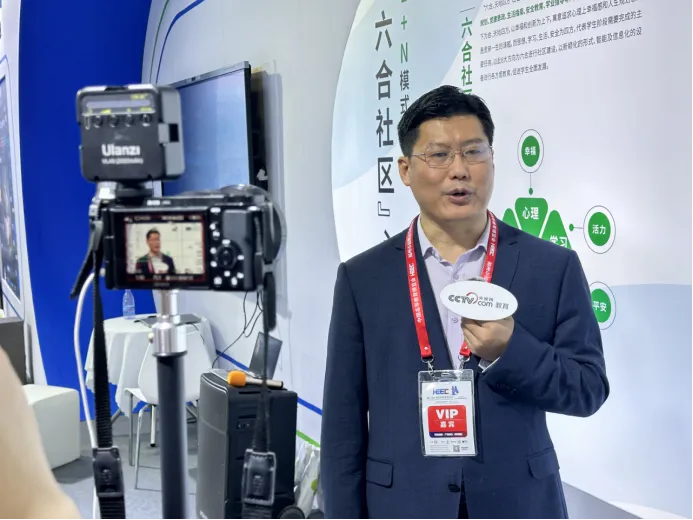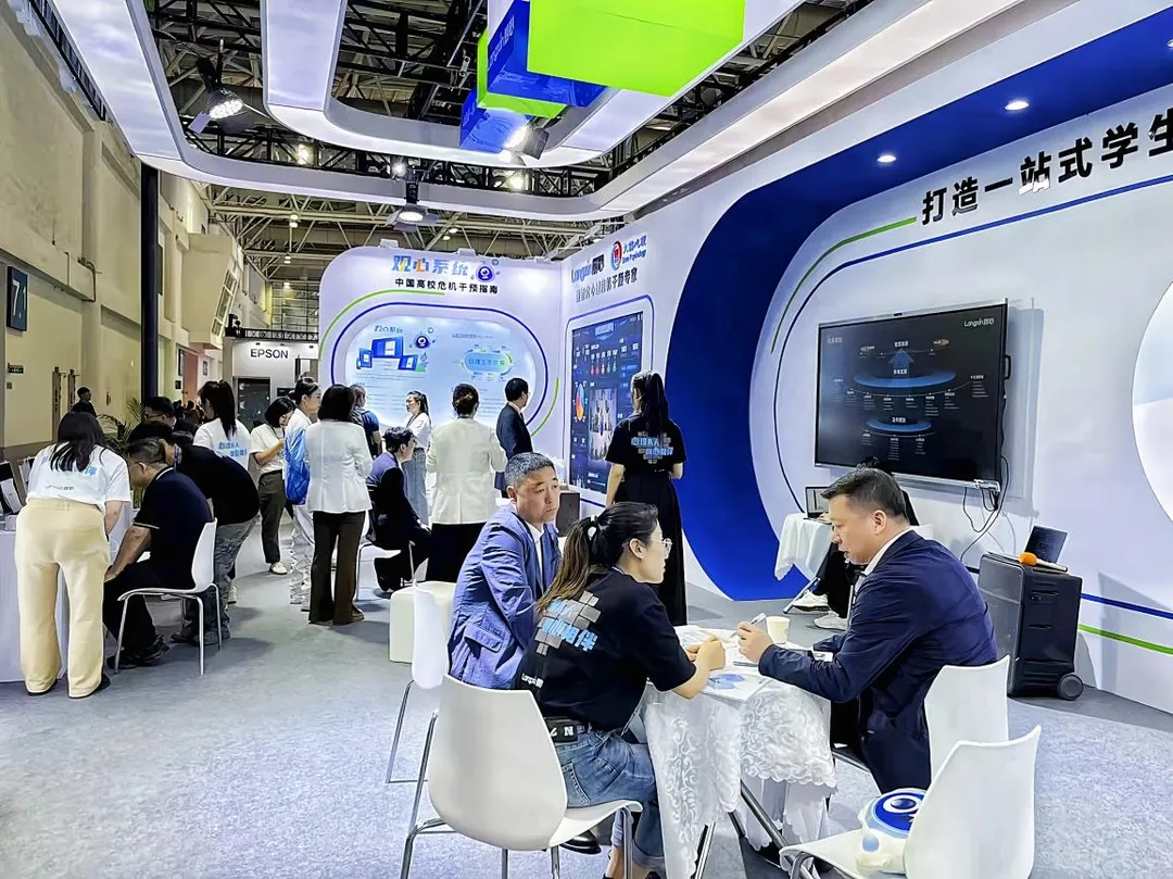 高博会期间,朗心同步举办了为期两天半的科技赋能教育展览活动,全方位展示朗心在高校心理健康教育与危机干预领域的最新服务方案。现场不仅有以集测评、干预、管理、科普为一体的学生心理安全防控平台——“观心系统”等多款产品亮相,更展示了“无感润心365,朗心一站式学生社区建设心理服务 模式”等专业化、数智化、平台化、综合性kok手机登录入口的解决方案。期间,朗心科技ceo王刚接受央视网采访。