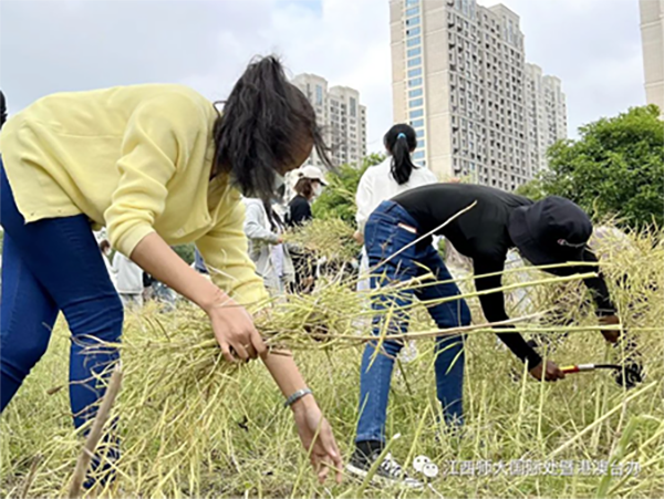 江西师范大学的外国留学生们以极大的热情参与了本次活动,在劳动中结识了新朋友,体验了中国的农耕文化,并加深了对劳动的理解。马达加斯加籍学生胡戈(中文名)开心地说道:“中国是农业大国,这是我第一次亲历农务,感到十分兴奋。”刚果(金)籍学生杨忠杰(中文名)表示:“这次劳动体验与众不同,让我有种回到自己国家的感觉”。“这次收割油菜活动很有创意,我从中体会到劳动的辛苦和收获的喜悦。”南非籍学生夏雨泽(中文名)如是说。