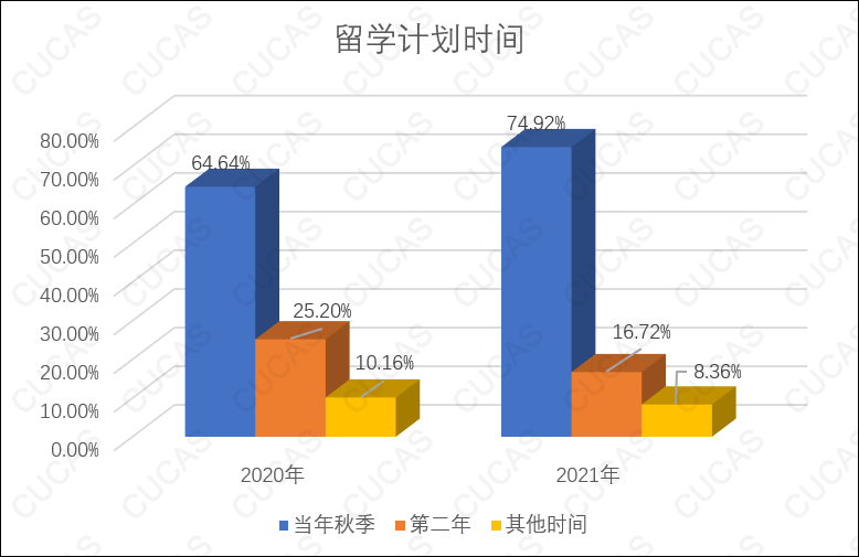 选择想在当年进入中国读书的学生比例上升10个百分点,可见伴随新冠疫情日趋“常态化”,学生想进入中国学习的积极性和意愿增加,因此选择当年课程的学生也有所增长。