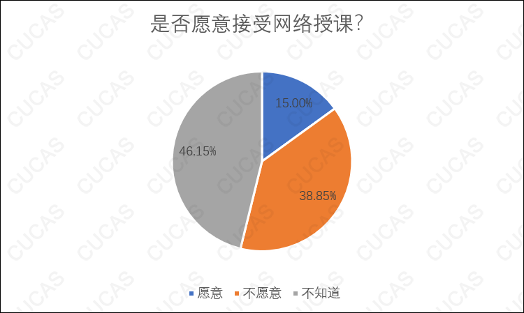 当被问及是否接受网络授课形式时,38.85%的学生不愿将网络授课作为唯一的学习形式或仅愿接受线下课程,仅有15%学生愿意接受。回答不确定的46.15%学生在填写原因时,绝大多数表示更愿意进入中国校园学习,想得到确定的政策。