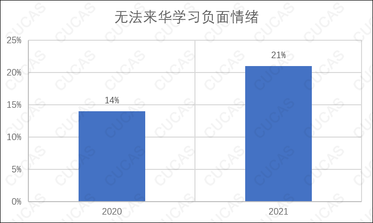 上图可知,因近两年持续无法入境来华学习,国际学生的负面情绪也提升了7%。