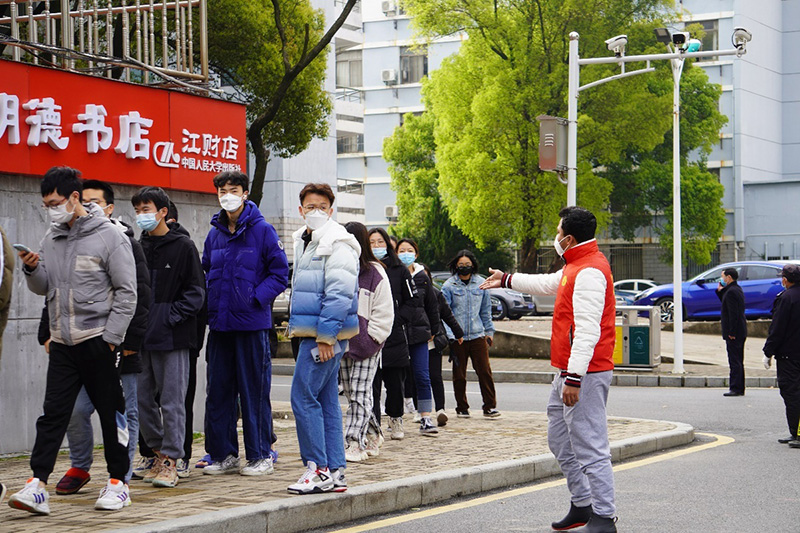 志愿者维持核酸检测队伍秩序