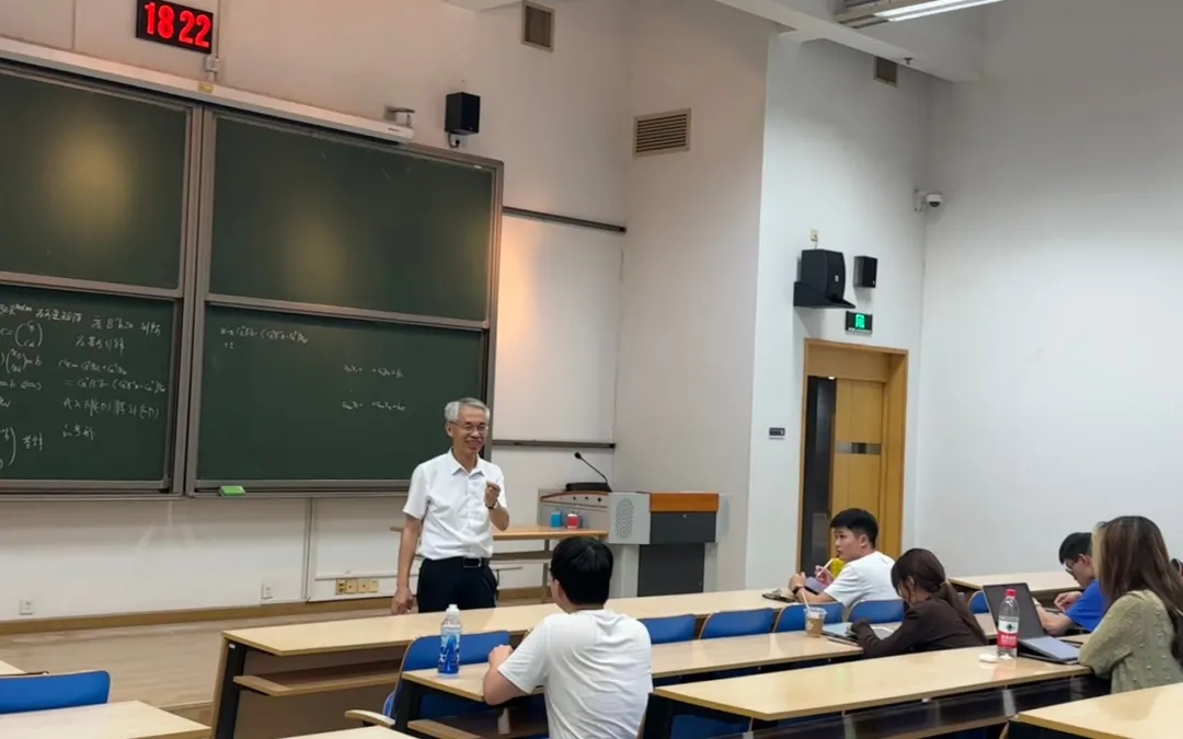 9月10日晚,郭田德走进国科大中关村校区教学楼教室,放下包,就拿起粉笔在黑板上飞快地写下数学公式和定理,粉笔在黑板上发出“哒哒哒”的声音,学生们不由自主地挺直了身板。