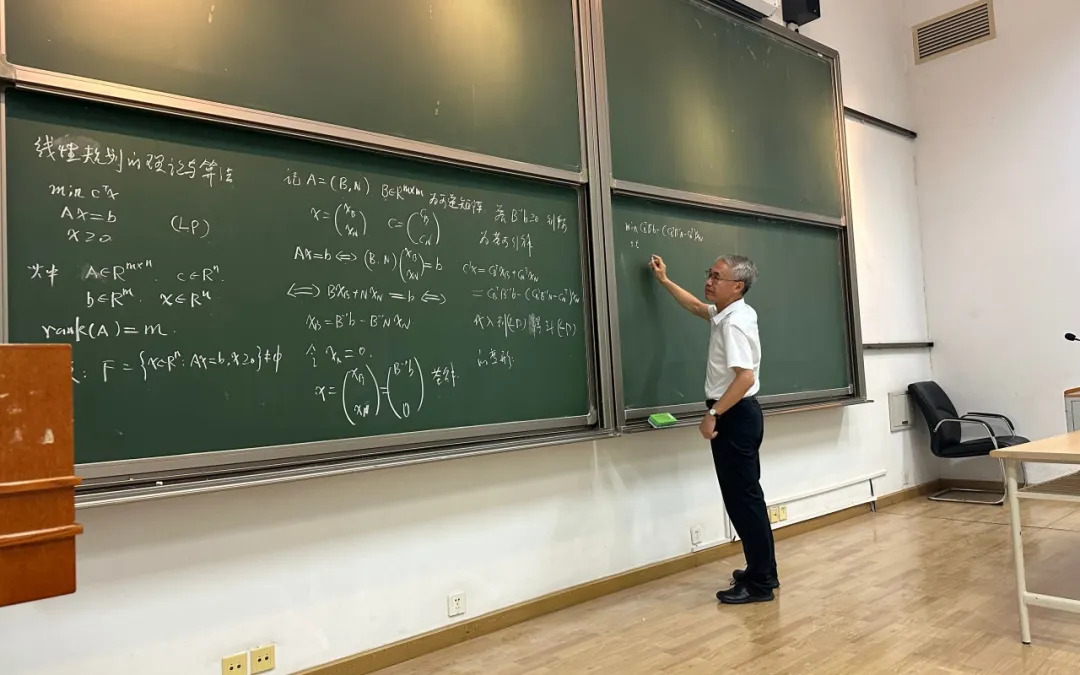 郭田德并不觉得辛苦,每年坚持上满80个课时。每周二晚上,他会到中关村校区给经管学院的学生上《金融优化分析》的课程,平时在雁栖湖校区、玉泉路校区还要给数学科学学院的学生上课。提到《金融优化分析》,郭田德回忆,早在十年前,经管学院要做精品课堂,院长找到了他,虽然他数学很好,但不懂金融,要将数学理论运用到金融领域,需要读大量金融的书籍、了解金融学知识和最前沿的成果。