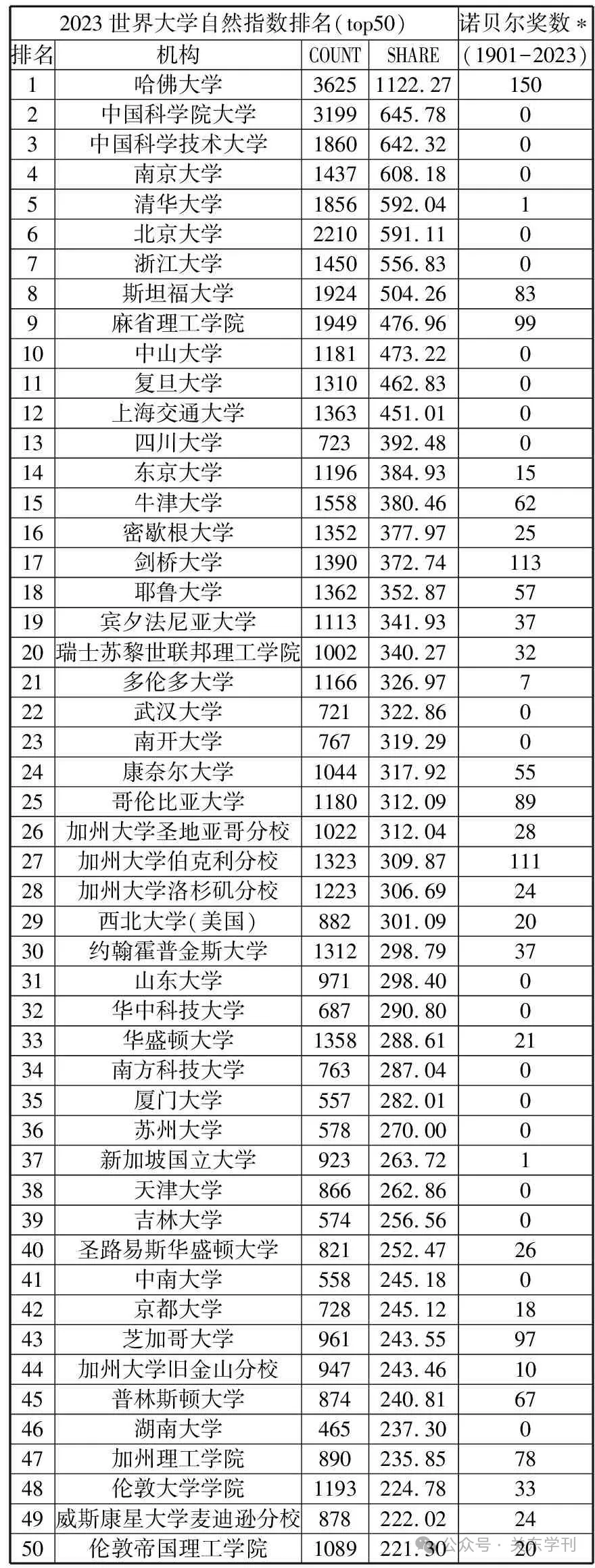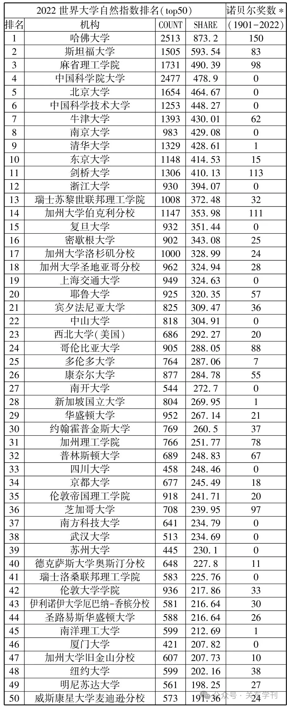 破“五唯”已经五年多了,收效并不显著,特别是唯论文、唯国际论文与唯“帽子”,不仅没有破除反而愈演愈烈。在中国学术界,国际论文是硬通货,国际顶刊论文是超级硬通货。长期以来,以国际顶刊论文数量作为一流人才标准,擅长发表国际顶刊论文者成为国内科教界的佼佼者,不仅得到高端“帽子”,而且备受欢迎,成为“双一流”高校争相重金礼聘的对象:不仅多一个“帽子”人才,更重要的是其擅长发表国际论文和国际顶刊论文,可以巩固、提升大学和专业的国际排名,这可是名校的头等大事,所以给出极为优厚的条件。高校与“帽子”人才,各得其所,皆大欢喜,但是却与加强原始创新无关!国际顶刊包括自然指数(nature index)列出的145种刊物(2014年开始选定68种,2018年升至82种,2023年更新为145种),最近两年自然指数(nature index)根据国际顶级期刊发表论文数量统计做出的世界顶级大学50强的榜单(笔者团队在原榜单右侧添加一列,标出该校诺奖得主数量,中国大学除清华有杨振宁外其余均为零)如表1、表2所示(1),全球前10所大学,中国占据7席,前50所中国占据21所,力压美国,排名第1。这些都与实际情况严重不符,充分表明了按照国际顶刊论文数量根本无法正确反映大学科研的真实水平与前沿竞争力。仔细审读这两份榜单及其发展趋势,可以预测,再过一两年,全球顶级大学前10名可能几乎被中国大学包揽,前50所中大部分也被中国大学所占据,国际排名沦为国际玩笑,这种过于离谱的结果必然导致自然指数世界大学排行榜失去公信力,信誉崩塌。它表明增加国际顶刊论文发表数量、提升大学国际排名这些引以为傲的努力与加强原始创新、实现科技自立自强几乎无关,甚至适得其反,因为消耗了巨额资金,可见问题极为严重。本文主要探讨四项内容:(1)国际顶刊论文已经成为中国科教界的超级硬通货,成为高端人才的第一追求;(2)国际顶刊论文不等于国际顶级成果,以其数量作为一流人才标准大错特错;(3)激励错配、多重损失:为西方免费打工、资金巨额浪费,劣币驱逐良币,塑造以追求发表sci论文与国际顶刊论文为中心的科研体系,严重偏离追求真理、追求卓越、追求原始创新与科技自立自强的国家目标;(4)可行的启动方案,利用依据国际顶刊论文数量进行大学国际排名体系行将破产的契机,开展原创大摸底,立竿见影地“破五唯”立新标,重建追求真理、追求卓越、追求原始创新与科技自立自强的科研体系。本文所述一流人才、一流成果、一流学科均指世界一流。
