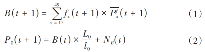 本研究选用padis—int国际通用人口预测软件作为预测工具,该软件采用的是队列要素人口预测方法(cohort component method),其基本原理是在给定基年分性别、分年龄人口数据的基础上,在队列生育、死亡和迁移风险的作用下,估计出未来分性别、分年龄人口情况。本研究选择分性别的单岁组年龄人口数即0岁、1岁、2岁、……、99岁、100岁及以上的男性和女性组成人口队列。根据人口队列的递进规律,新出生人口的预测模型为: