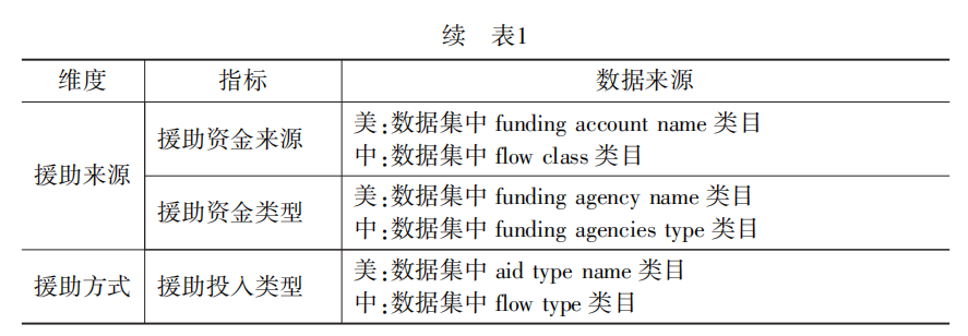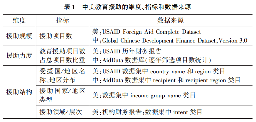研究从援助规模、援助力度、援助结构、援助来源、援助方式五个维度设计8项指标对中美教育援助进行比较分析(见表1)。