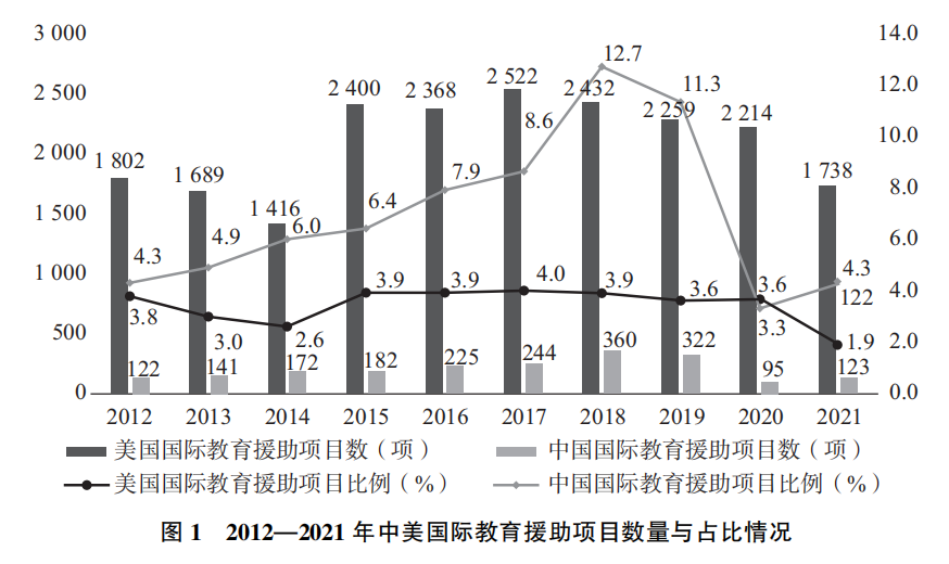 总之,现有对中美国际教育援助的研究,在内容上侧重历史政策回溯、特点模式概括和经验启示,在研究方法上多文献梳理,缺乏具体数据支持。对近些年来处于竞争状态的中美国际教育援助的新政策、新趋势缺乏关注。本文聚焦中美国际教育援助,以数据为支撑,通过梳理近十年中美国际教育援助进展,比较其政策发展变化,希冀为我国国际教育援助更好应对以美国为代表的西方国家的竞争与挑战,更好发挥教育援助在推进全球教育治理体系变革和推动人类命运共同体构建中的作用提供参考。