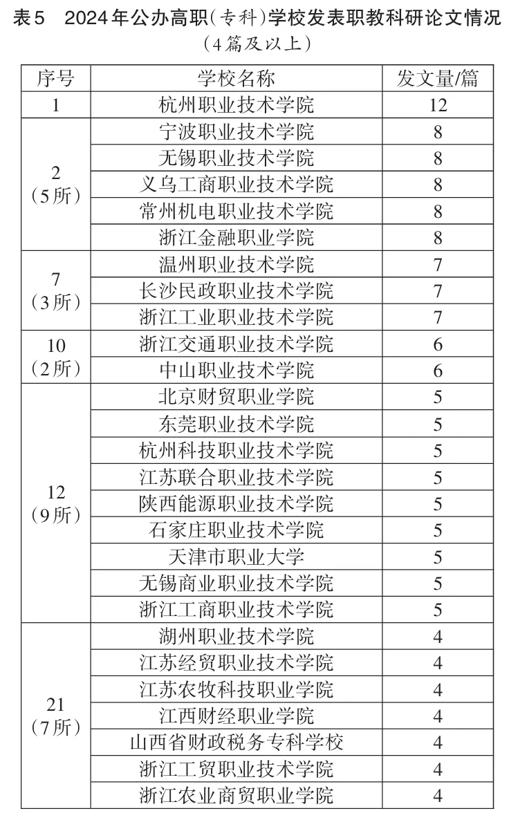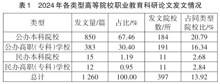 (一)2024年各类型高校职业教育科研发文总体情况