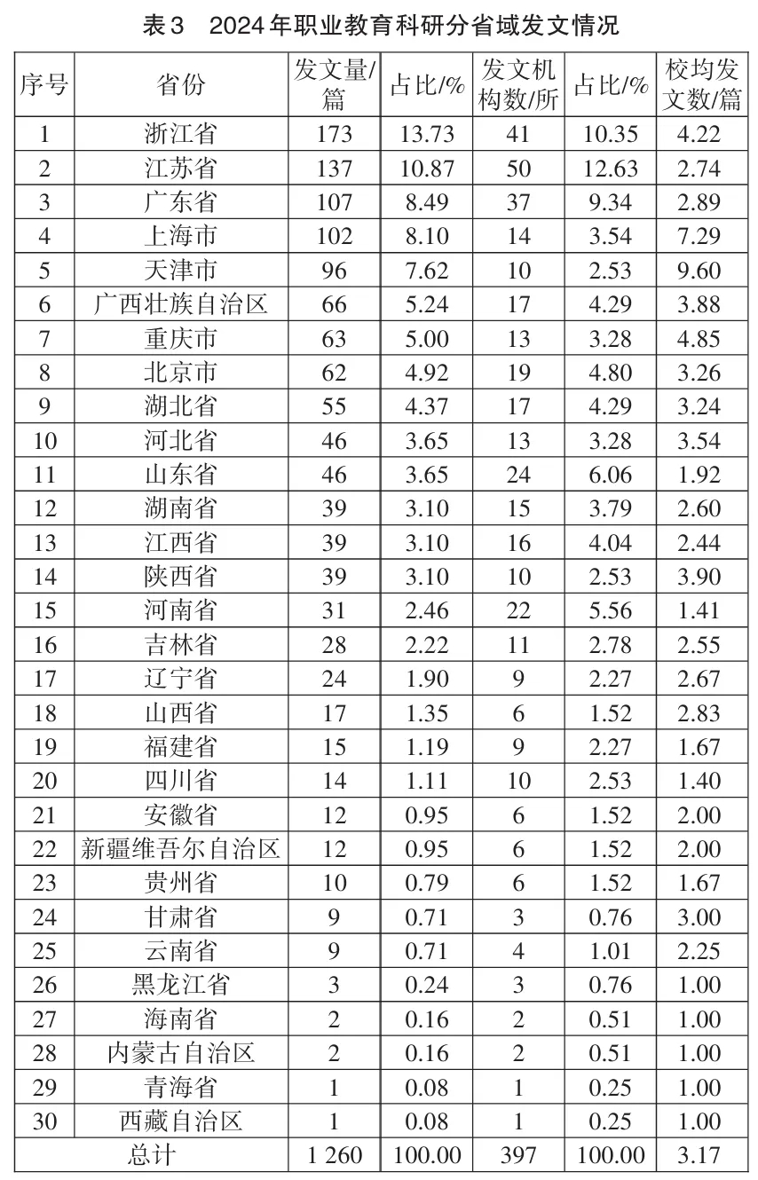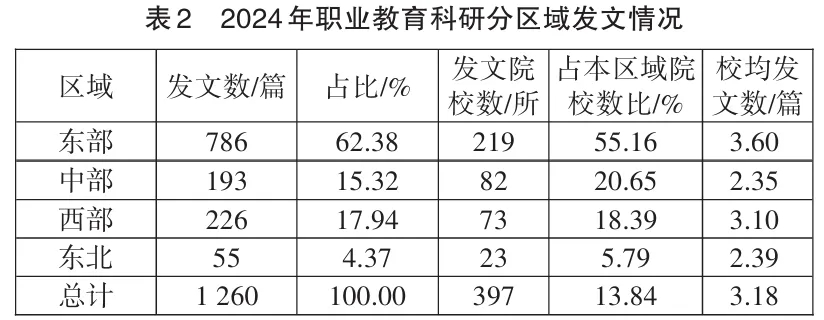 (二)2024年职业教育科研发文机构的区域分布特点