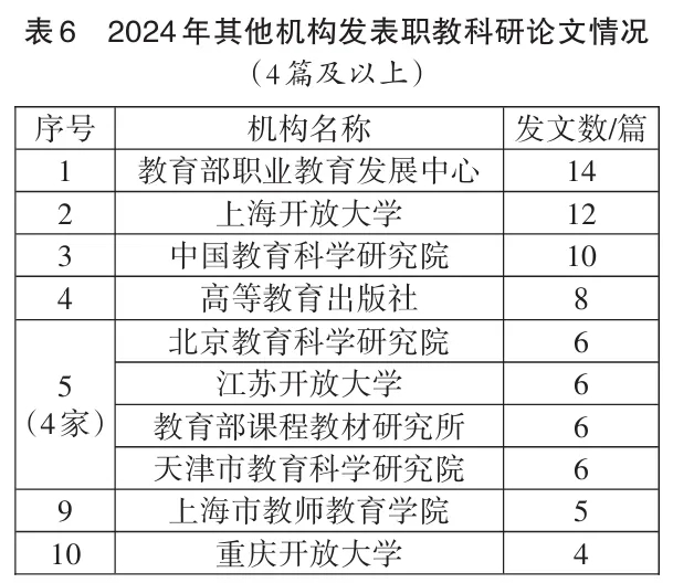 2024年共有91家其他类型的机构发文180篇,占全部发文总量的12.5%。其中发文4篇及以上的有10家,发文77篇,占其他机构发文总量的42.78%。(见表6)