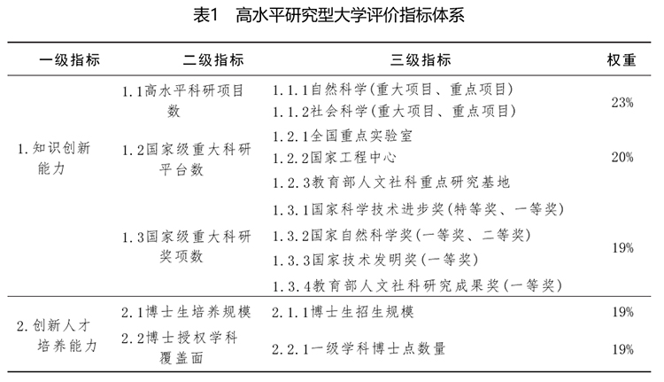 2.高水平研究型大学的层次划分