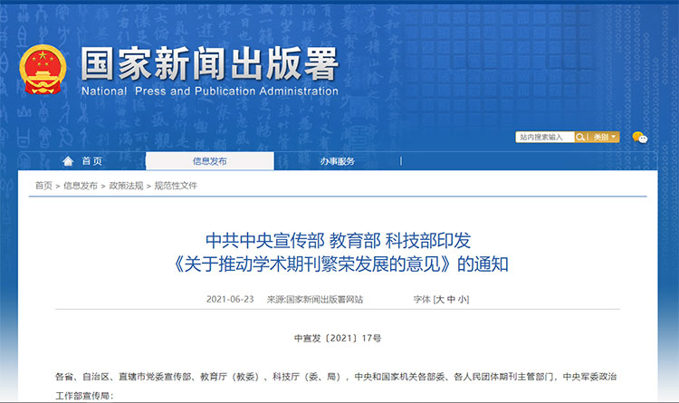 近日,中宣部、教育部、科技部近日联合印发《关于推动学术期刊繁荣发展的意见》。《意见》明确:学术期刊水平、影响力要明显提升,努力打造一批世界一流、代表国家学术水平的知名期刊;提高学术成果在我国期刊首发的比例,杜绝“关系稿”“人情稿”,坚决抵制和纠正学术不端行为;本科生、研究生申请学位和毕业考核不与在学术期刊上发表论文情况简单挂钩等推动学术期刊繁荣发展;原则上不再新批多学科综合性学报等,共14点意见。意见全文如下: